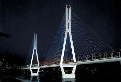 中國電工對南京長江第二橋景觀照明及自雍莊至東揚坊全線21.2km的道路照明、互通立交橋的高桿照明承擔了全過程監理及景觀照明工程設計工作。